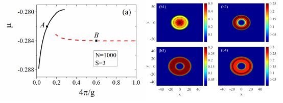 (b3,b4)擁有環(huán)形基態(tài)分量的半渦旋量子液滴。