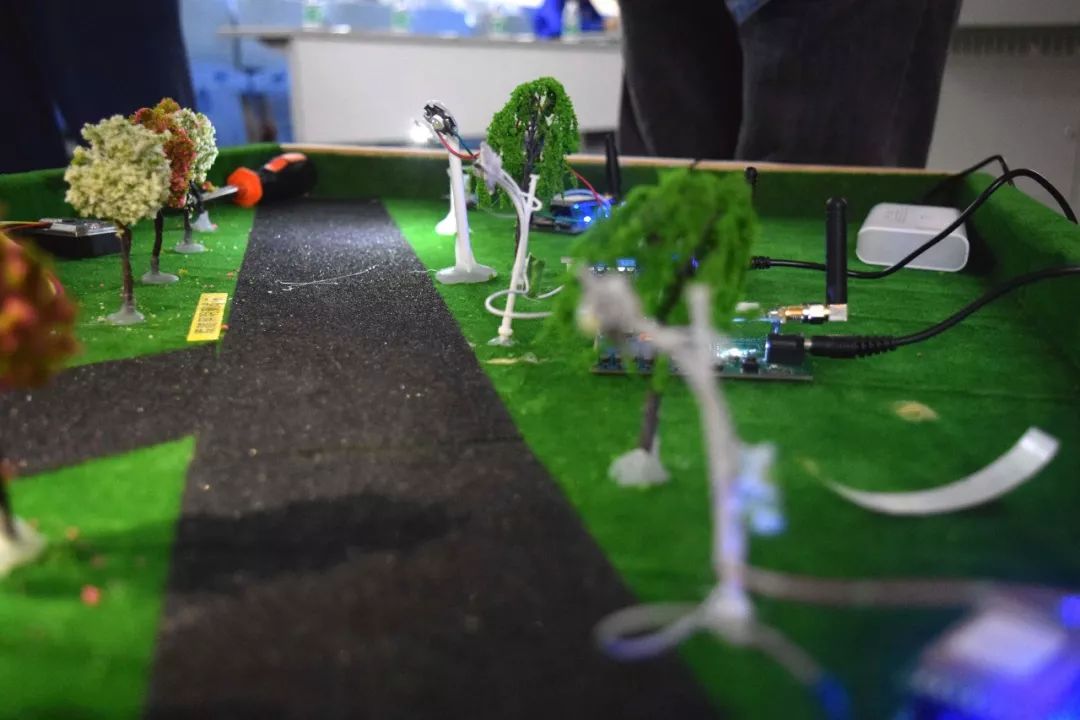 比賽的過(guò)程中不少團(tuán)隊(duì)展示了參賽作品實(shí)物。如“云路燈”:一種基于LoRaWAN的智慧路燈系統(tǒng)。據(jù)作者介紹這是一個(gè)可以根據(jù)車輛來(lái)往信息智能控制路燈的開(kāi)關(guān)的系統(tǒng),這一曾經(jīng)參賽的作品已在原有基礎(chǔ)上進(jìn)行了改進(jìn)。
