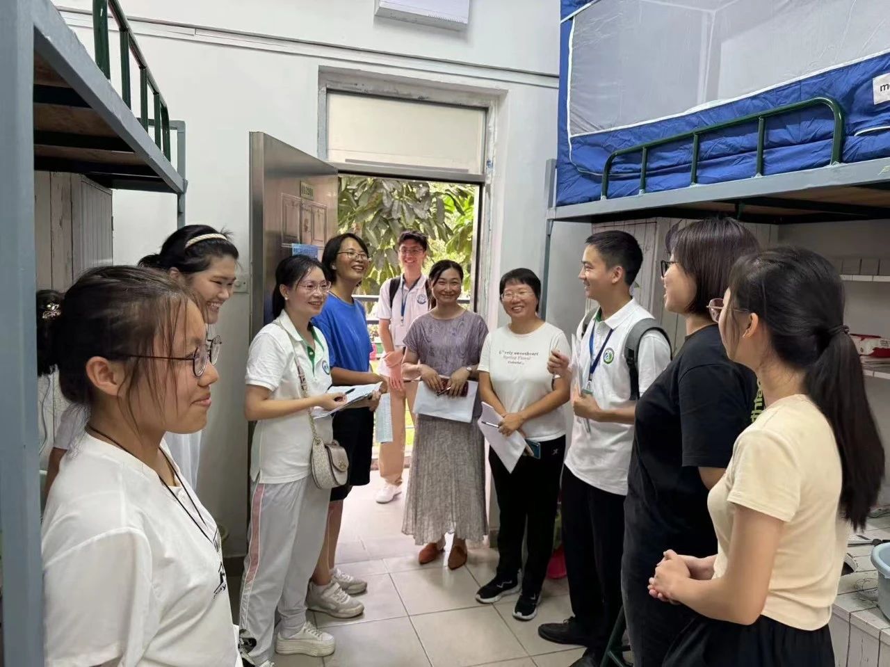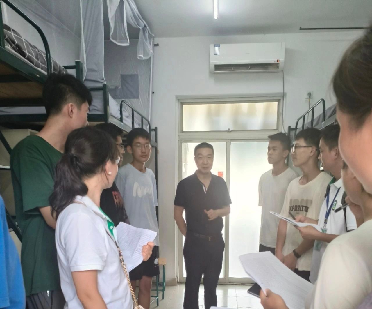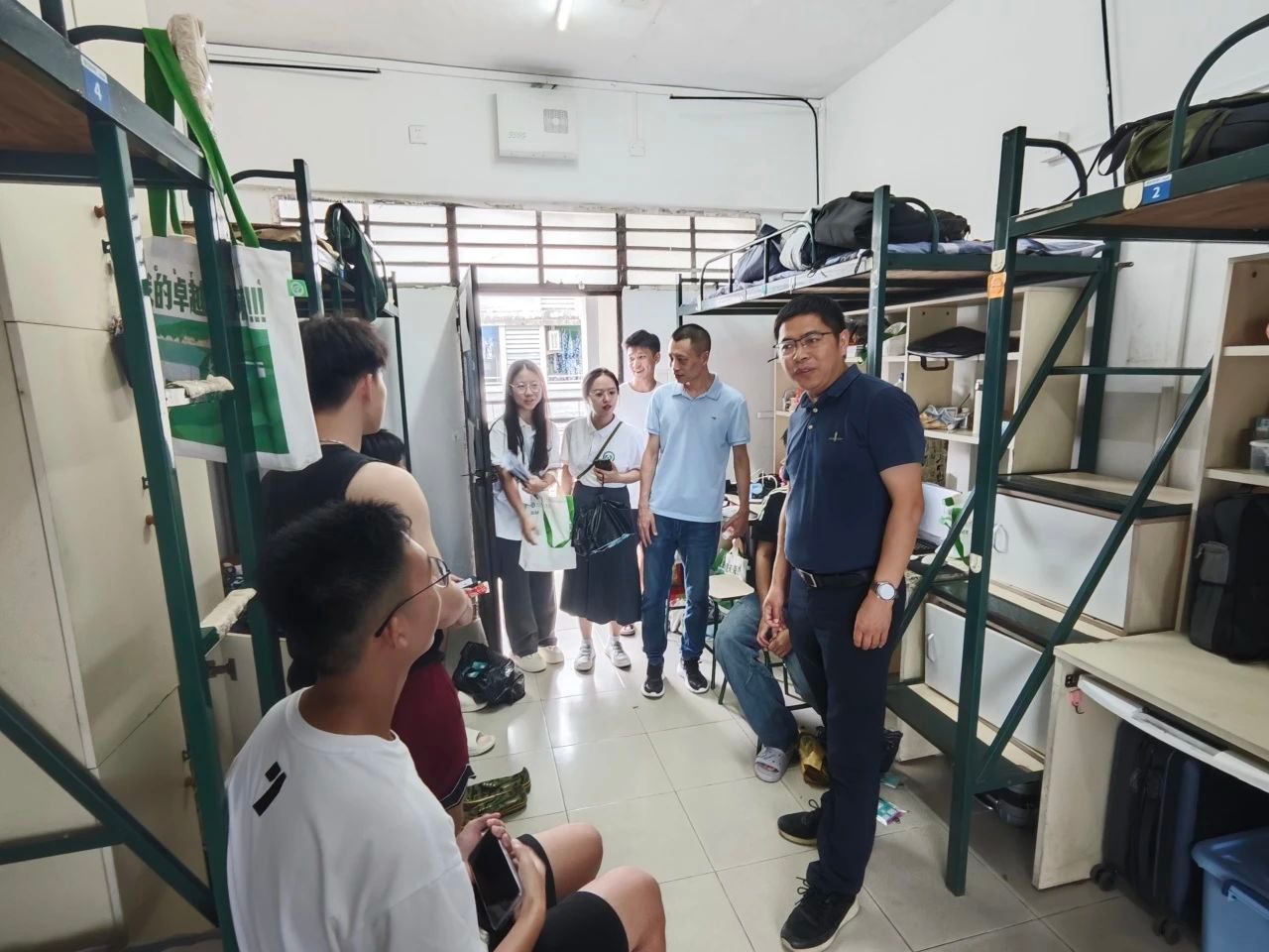 院領(lǐng)導(dǎo)、新生班主任、輔導(dǎo)員、助班走訪新生宿舍,關(guān)心問候新生入住情況。