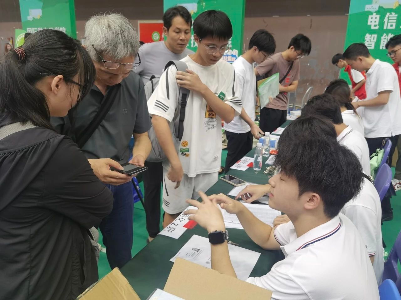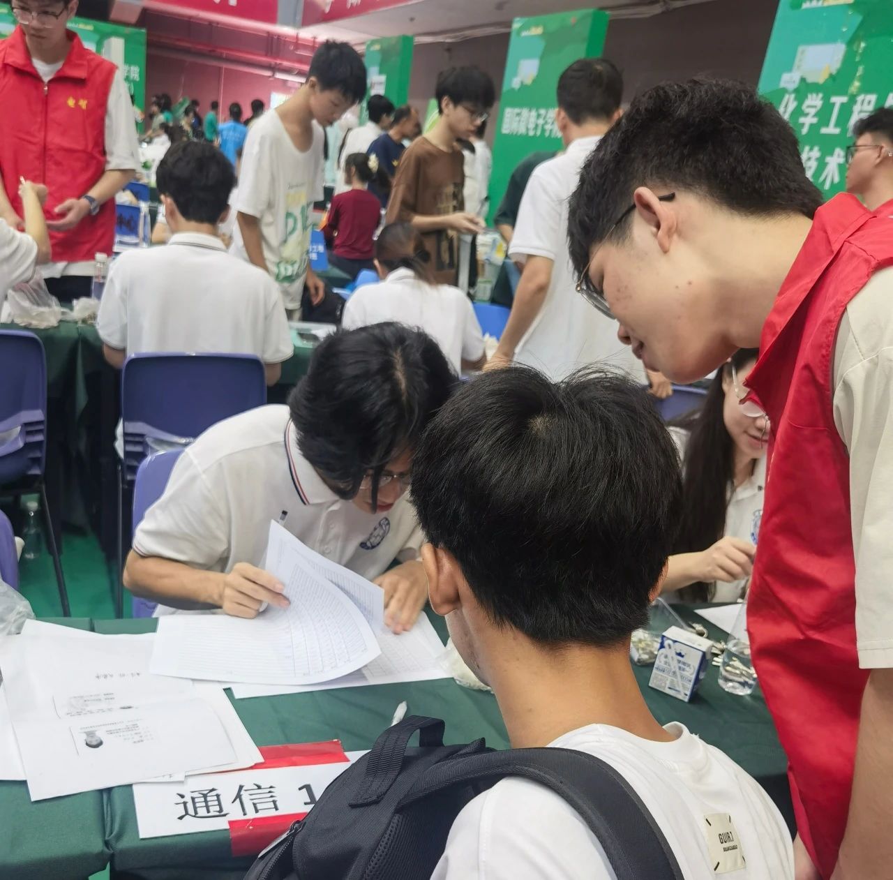 迎新現(xiàn)場,學(xué)院老師、助理班主任和迎新志愿者們分工協(xié)作,為新生辦理各項入學(xué)報到手續(xù)。
