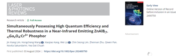 近日,東莞理工學(xué)院電信工程與智能化學(xué)院王紅成教授團(tuán)隊(duì)研發(fā)了一種同時(shí)兼具高量子效率和超高熱穩(wěn)定性的近紅外發(fā)光材料。該研究在《Laser & Photonics Reviews》(影響因子:9.8,中科院1區(qū)TOP期刊)上發(fā)表題為“Simultaneously Possessing High Quantum Efficiency and Thermal Robustness in a Near-Infrared Emitting ZnAlB(1-x)GaxO4:Cr3+ Phosphor”的研究論文。這篇論文的第一作者林金祥是我校與諾丁漢大學(xué)馬來西亞校區(qū)的聯(lián)合培養(yǎng)博士生,我院光電材料團(tuán)隊(duì)呂偉副研究員和王紅成教授為通訊作者。
