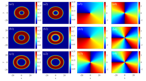 (b3,b4)擁有環(huán)形基態(tài)分量的半渦旋量子液滴。