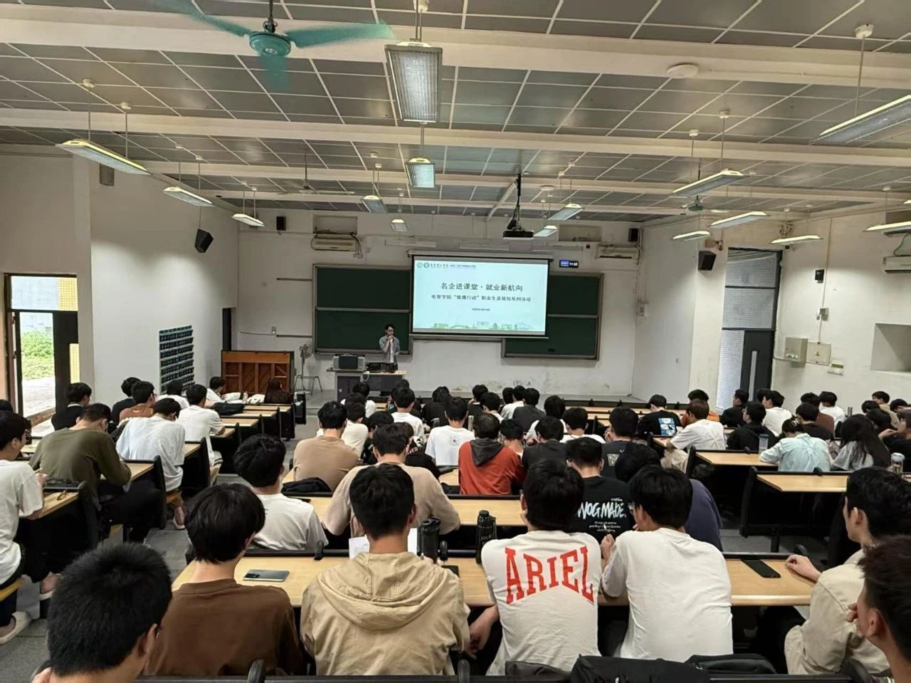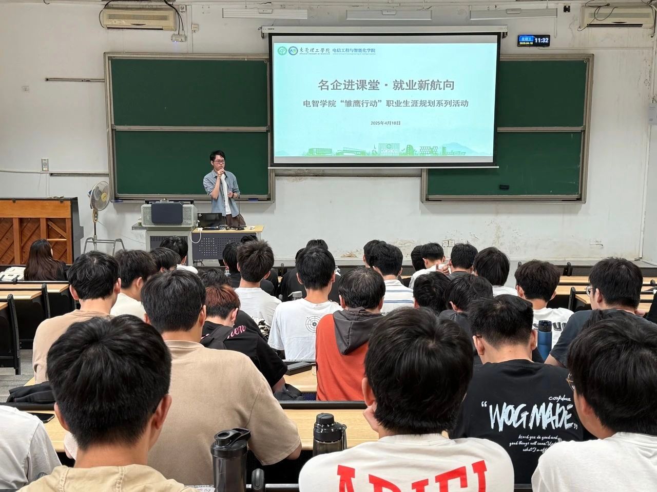 2025年4月18日,“雛鷹行動(dòng)”職業(yè)規(guī)劃系列活動(dòng)之“名企進(jìn)課堂,就業(yè)新航向”火熱開展,電智學(xué)院2022級(jí)就業(yè)指導(dǎo)課堂上人頭攢動(dòng),學(xué)院實(shí)習(xí)基地華勤技術(shù)、視源股份兩家企業(yè)進(jìn)入課堂為同學(xué)們帶來了精彩的就業(yè)指導(dǎo)講座。華勤技術(shù)人力資源經(jīng)理眭維、招聘主管趙莉、馬玟,校友李星梓,視源股份HR王藝霏、校友范乾煊進(jìn)入就業(yè)指導(dǎo)課堂,為學(xué)生提供“一站式”求職賦能。