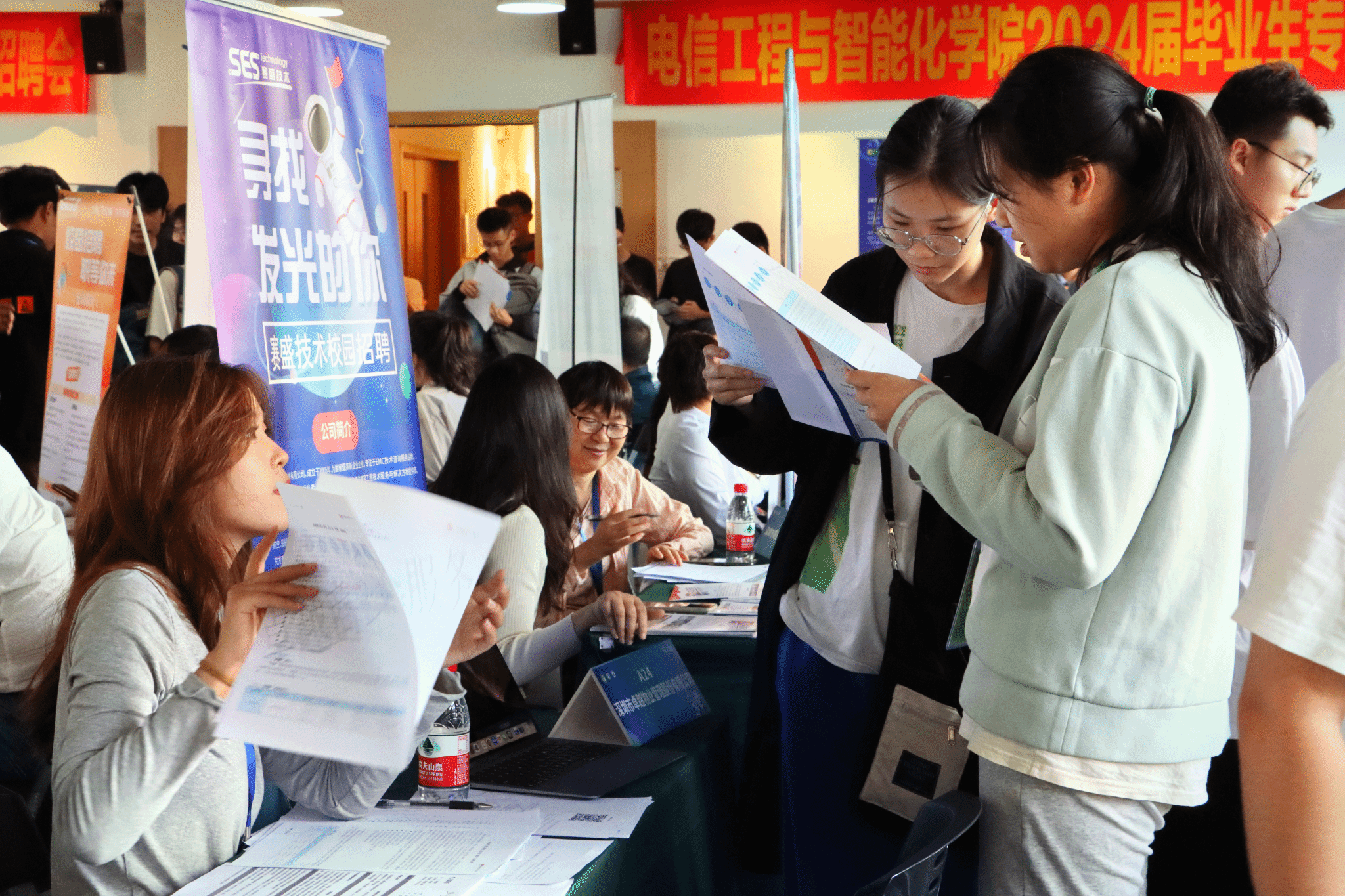 為充分發(fā)揮校園招聘主渠道作用,搭建用人單位與學(xué)生溝通的橋梁,給同學(xué)們提供更好的就業(yè)指導(dǎo)服務(wù),電信工程與智能化學(xué)院于2023年11月25日在學(xué)生中心A棟三樓展覽廳舉辦2024屆畢業(yè)生專場招聘會。招聘會上,大四學(xué)生現(xiàn)場求職,低年級學(xué)生參加雛鷹行動求職體驗(yàn)社會實(shí)踐。電智學(xué)院領(lǐng)導(dǎo)、老師親臨現(xiàn)場指導(dǎo)學(xué)生,并與用人單位展開深入了解交流。