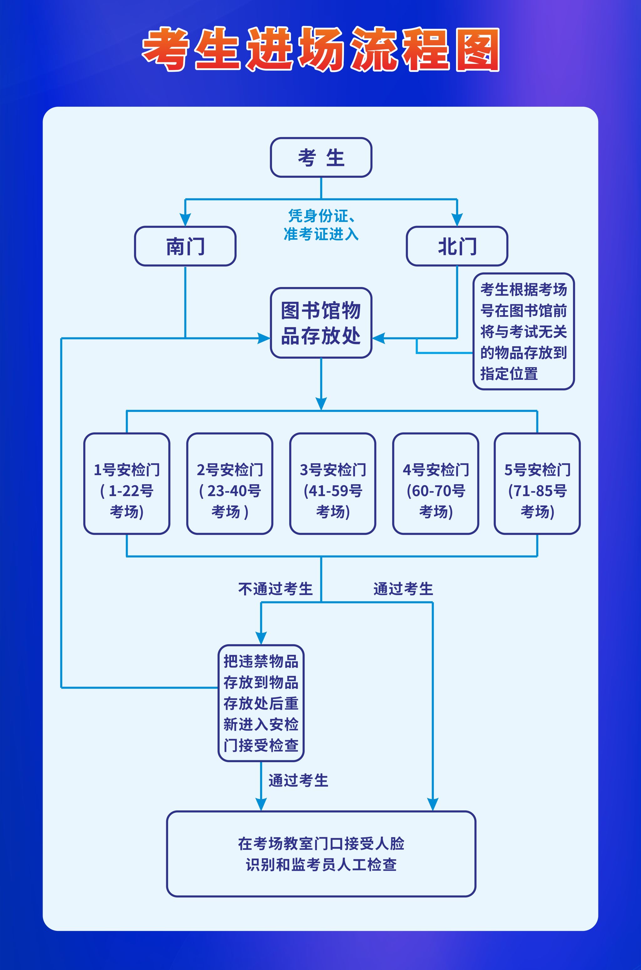 3. 12月21日和22日上午7:30-8:00為進(jìn)校高峰期,請考生提前計(jì)劃進(jìn)校時(shí)間,錯(cuò)峰進(jìn)校,預(yù)留充足時(shí)間步行至考場及入場安檢查驗(yàn)。