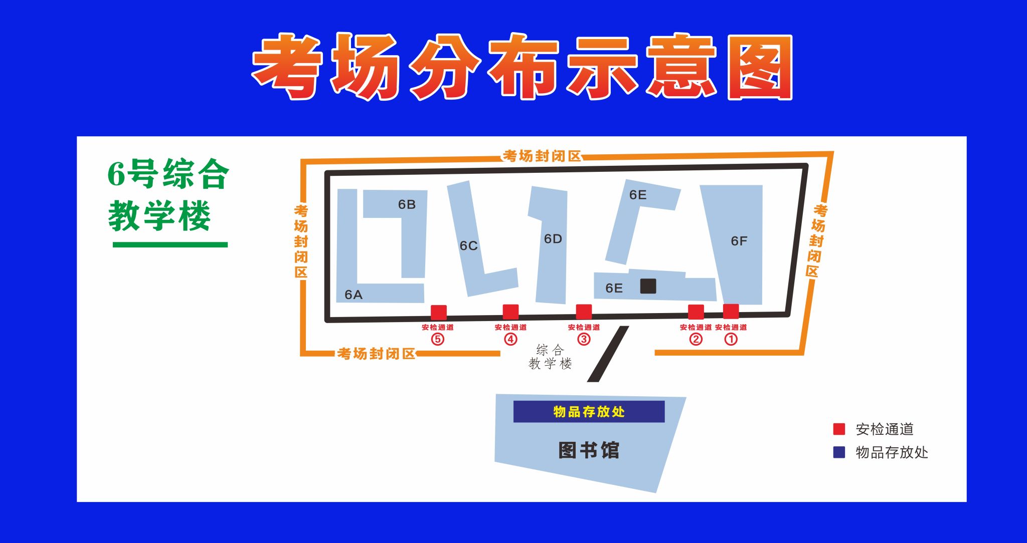 按照要求,我校考點(diǎn)在6號(hào)綜合學(xué)樓設(shè)置考場封閉區(qū),并在各入口處設(shè)置安檢口,請務(wù)必注意以下要求: