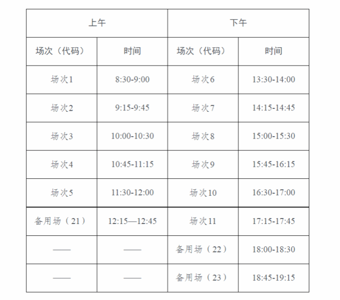 每場(chǎng)次30分鐘,包含登錄入場(chǎng)、測(cè)試、考試、收卷、退場(chǎng)等部分,其中測(cè)試及考試具體時(shí)間安排如下: