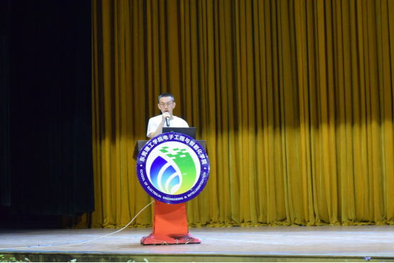 隨后,活動(dòng)進(jìn)入第二部分——新生見面會(huì)環(huán)節(jié)。電智學(xué)院黨委書記鄧成良教授就學(xué)院情況進(jìn)行介紹,他表達(dá)了對(duì)新生的歡迎,同時(shí)也針對(duì)當(dāng)代青年大學(xué)生的特點(diǎn)對(duì)新生提出了要求。