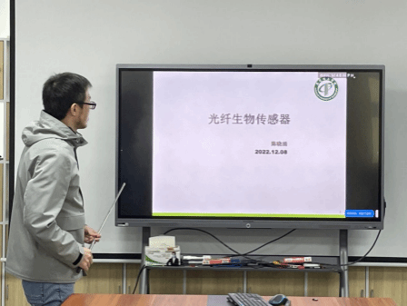 隨后,報告人與參會教師進(jìn)行了熱烈的交流和討論,針對該報告中涉及到測量工具——傾斜光纖光柵,探討其寫制方法與在光電系實(shí)驗(yàn)室操作的可行性;針對生物分子測量時間,探討了分子間相互作用的相關(guān)測量方案。最后,還探討了光纖生物傳感器如何與新材料結(jié)合以提升探測極限,以及如何與微流芯片結(jié)合實(shí)現(xiàn)單分子單細(xì)胞測量。