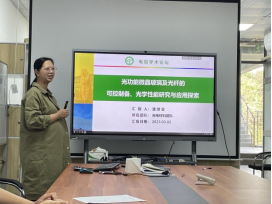 報告會上,潘綺雯博士分享了題為《光功能微晶玻璃及光纖的可控制備、光學性能研究及應用探索》的研究工作。她首先介紹了光纖激光玻璃材料的發(fā)展瓶頸,并指出光功能微晶玻璃是發(fā)展新波段、可調諧光纖器件的重要突破口,接著圍繞“自上而下”及“自上而下”法制備的光功能微晶玻璃展開了系統(tǒng)的討論,分享了自己在光功能微晶玻璃的制備、光學性能研究以及應用探索等方面的研究進展。