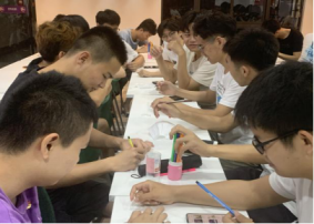 4月15日,19電子1班在莞華活動(dòng)室唱起了團(tuán)歌,拉開(kāi)了學(xué)習(xí)黨史的序幕。班會(huì)上,同學(xué)們回顧了中國(guó)共產(chǎn)黨帶領(lǐng)人民抗擊疫情的歷程后,揮舞著手中的彩筆,把對(duì)祖國(guó)的熱愛(ài)、對(duì)黨的敬佩、對(duì)醫(yī)護(hù)人員的贊美、對(duì)美好生活的向往,繪制在小小的口罩上。同學(xué)們通過(guò)對(duì)口罩涂鴉的形式,感恩在關(guān)鍵時(shí)刻毫不退縮,危難關(guān)頭毫不畏懼,英勇奮戰(zhàn)在一線的無(wú)數(shù)共產(chǎn)黨員;感恩在中國(guó)共產(chǎn)黨的領(lǐng)導(dǎo)下,面對(duì)傳播速度最快、感染范圍最廣、防控難度最大的一次重大突發(fā)公共衛(wèi)生疫情防控中,中國(guó)向歷史、向人民、向世界交出的這份抗疫合格答卷。同學(xué)們表示,在下一階段,我們通過(guò)疫苗接種,共同攜手構(gòu)筑起防疫的長(zhǎng)城后,或許在不久的將來(lái),我們終將摘下口罩。這一個(gè)個(gè)五彩繽紛的口罩,傳達(dá)出同學(xué)們“學(xué)黨史、知黨情、跟黨走”的信心和決心,也傳達(dá)出了同學(xué)們對(duì)美好生活的期待。