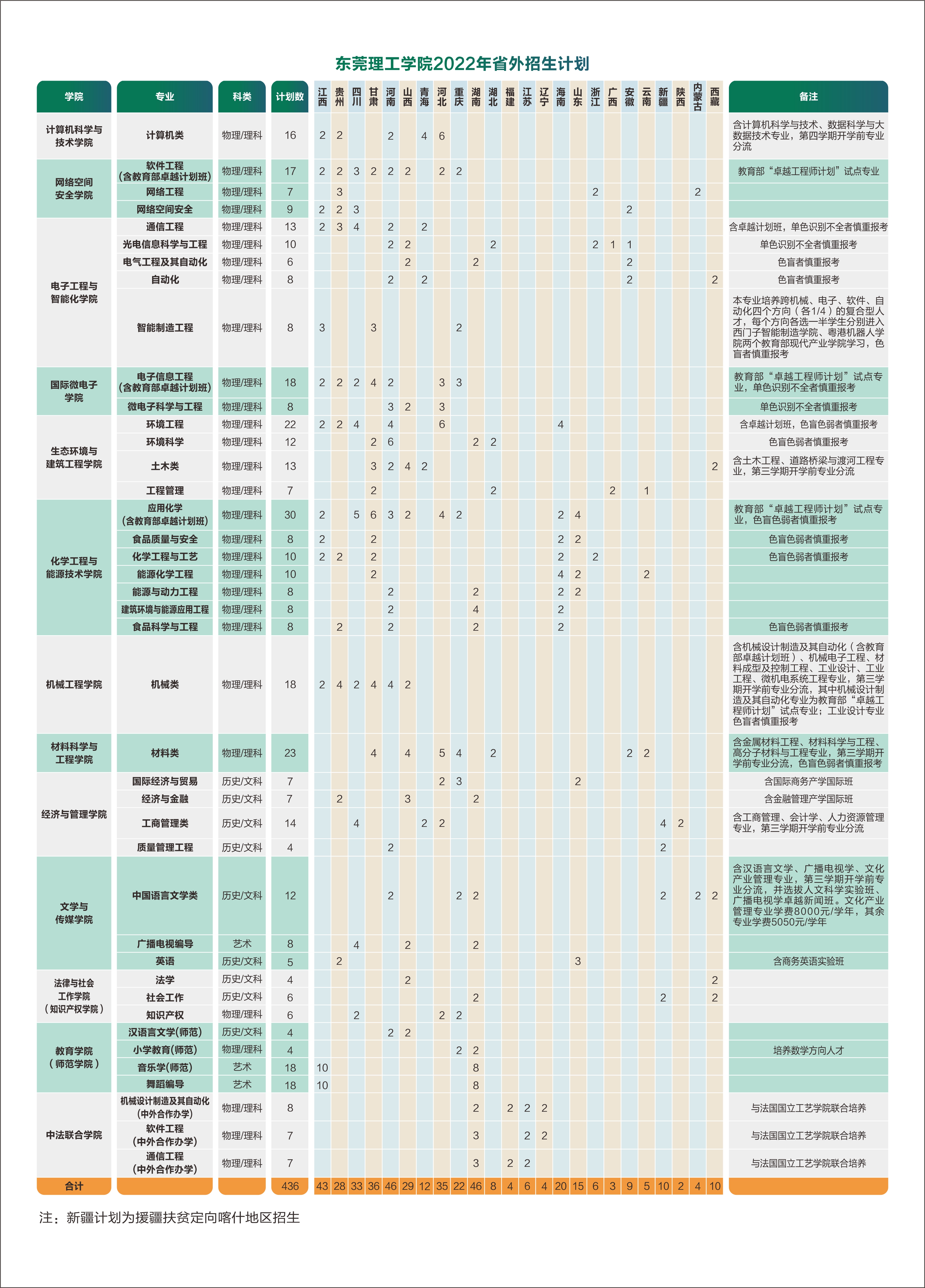 學(xué)校2022年省外招生計(jì)劃