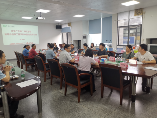 2021年4月22日下午,廣東第二師范學院物理與信息工程學院楊颯院長一行9人,到電子工程與智能化學院交流座談,座談會在電子樓8A207會議室舉行,電子工程與智能化學院黨委書記兼執(zhí)行院長胡耀華、副院長宋躍、副院長任斌、副院長胡君,以及電子信息工程系相關負責老師出席了本次座談會,會議由宋躍主持。
